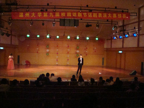 各个学院和农历剧社的26个参赛剧目。每组限定表演时间为15分钟,并由评委现场打分。同学们精湛的演技和优秀的创意无不引来台下观众阵阵热烈的掌声。经过一天激烈的比拼,评委们本着公平公正的原则进行认真评审,共有《雷雨》、《绝恋》等6个参赛作品入围决赛。