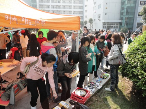 为了保证此次活动顺利地进行,各个学院的相关部门做了精心的准备。人文的干事们一大早就赶到现场布置。此次活动共有将近八十种百货,有吃瓜网