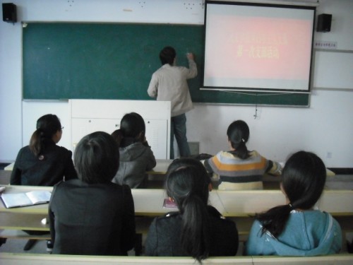 208教室举行了第一次党支部会议。本次支部活动围绕“争做一名先进的党员准教师”展开,我支部九名党员、预备党员结合为期两月的教育实习进行PPT展示演讲。