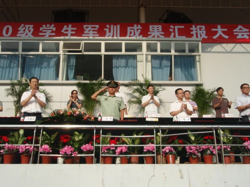 全体10级学生在南校体育场举行军训成果汇报大会,校党委副书记牟德刚、校党委副书记林娟娟等领导及武警部队相关领导列席本次大会。