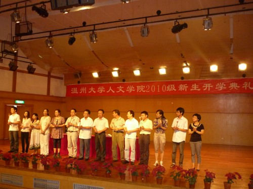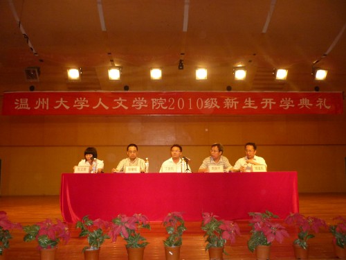 彭小明教授作为教师代表发言,就大学里如何学习、如何成长成才等方面提出了中肯的建议和殷切的希望。随后,本科生代表钟刘超和研究生代表同小花同学分别发言,畅谈来到温大后的感受及今后在学习工作生活各方面的规划。最后,在教师节这样一个特殊的日子里,新生代表们还为到场的老师送上了鲜花,表达对老师辛勤耕耘的崇高敬意。开学典礼结束后,周剑平书记还为10级本科新生进行了校规校纪教育,让新生们全方位了解大学的学习和生活状态,明确各项规章制度,科学规划自己的大学生涯,树立远大的理想。