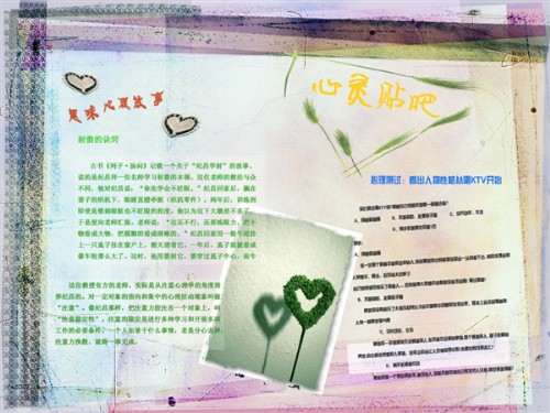 心理小贴士画报是由心理部干事以及各班心理委员共同支持参与制作的,运用心理小故事、心理电影、心理测试等小贴士的形式,分别张贴在学生公寓宣传栏以及学院心语轩宣传窗内,供学院广大学生观看,从而达到了宣传心理健康、发扬人文关怀的主旨。