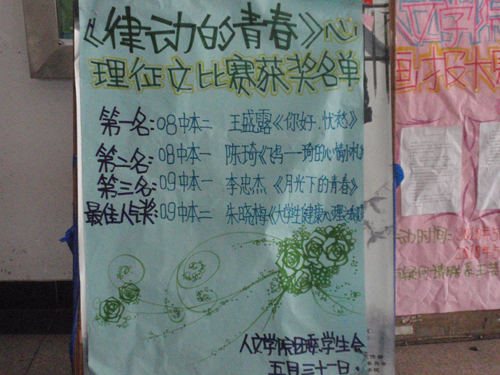 心理部组织了“律动的青春”之心理征文大赛,得到了全院同学的踊跃参加。