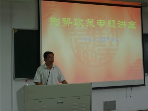 党总支书记周剑平担任主讲人,讲座分两场进行,08、09级学生分别参与。