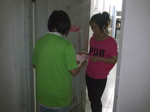 大四寝室进行宣传。一方面通过宣传单进行宣传,积极响应校青年志愿者服务中心的活动;另一方面通过语言的交流来宣传"两项计划",为大四同学讲解 "两项计划"的相关政策及注意事项,让有意向的同学坚定了服务"两项计划"的决心。