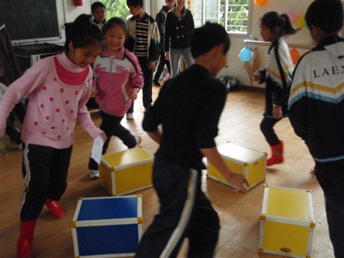 上午9点,部分志愿者先行前往目的地进行前期准备工作。下午1点,活动正式开始。此次活动以"大手牵小手,携手看世博"为主题,通过游园的形式展开,包括给海宝画嘴巴、世博知识问答、两人三足、抢凳子、跳绳、夹气球、萝卜蹲等游戏环节,并准备了丰富的小奖品。游戏结束后,志愿者与丽岙小学的孩子们一起前往多媒体教室开展联谊会。