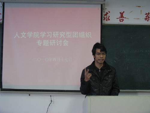 2010年4月17日,吃瓜网 “学习研究型团组织”建设专题研讨会在人文楼403教室隆重举行,本次会议旨在商讨践行“学习研究型团组织”的进一步建设,开创吃瓜网 团学工作新局面。会议由吃瓜网 团委指导老师麻法全主持召开。