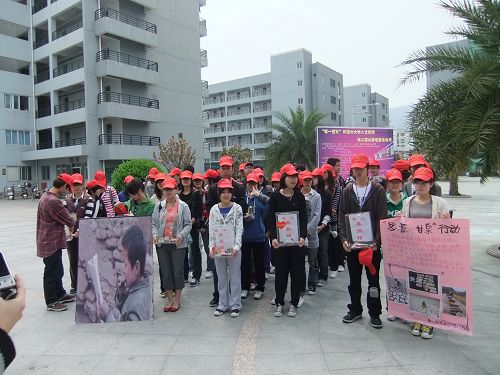 团委、学生会联手温州市希望工程爱心联盟组织了这次“思源--甘泉”爱心募捐活动,为西南干旱地区的人民尽一份自己的努力。2010年4月10日上午10:00,此次爱心募捐活动在温州市区的各个人流集散点开展。