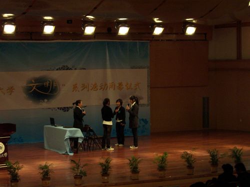 “文明月”系列活动闭幕式暨颁奖晚会在北校音乐厅隆重举行。团委曾国仕老师、法政学院吴玉宇教授、团委副书记朱淑君同学、文明督察队队长李宏汇同学应邀担任评委,各学院主席团成员也出席了本次晚会。