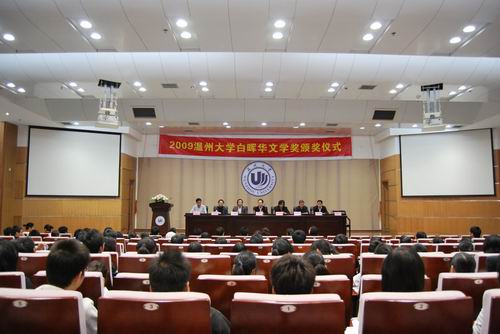 第三届“白晖华”文学奖颁奖仪式在北校信息楼报告厅隆重举行。“白晖华”文学奖赞助人、著名作家企业家吴明华先生、《温州日报》主编、“白晖华”文学奖理事会副理事朱闻武先生、校党委宣传部长蔡曙光老师、校团委副书记杨立淮老师、吃瓜网