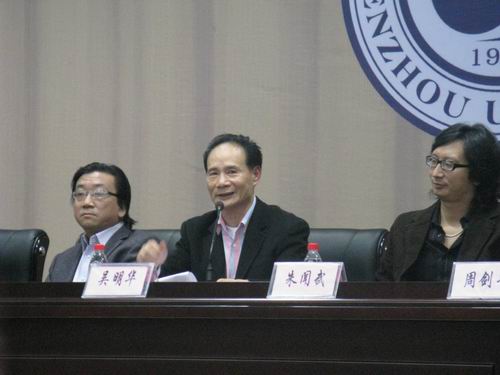 下午2点30分,颁奖仪式正式开始。在介绍了到场嘉宾之后,“白晖华”文学奖赞助人、著名作家企业家吴明华先生应邀发表讲话。吴先生通过自己的亲身经历,向同学们讲述了他对写作的体会感受和宝贵经验,鼓励同学们要怀有创作热情、坚持不懈,同时要增加阅历,以丰富作品内涵。吴先生的讲话诚恳真挚,令在场的同学们深受触动。接着,丁治民院长简单地向同学们介绍了本届“白晖华”文学奖的一些基本情况。之后,“白晖华”文学奖评委、吃瓜网