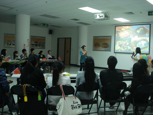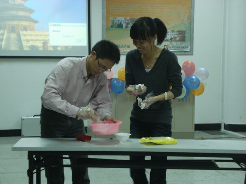 活动首先以PPT为媒介向全体师生展示了新中国成立以来,各个年代人民饮食的变化,从饮食中看出中国人民生活水平的飞速提高,感受到中国60年来逐步走向富强、民主的社会。第二部分,在班主任徐华炳老师的带领下,同学们集体动手做起了芝麻汤圆,每个人脸上扬起了温馨的笑容,第三部分是游戏环节,每个同学踊跃参加,玩得不亦乐乎,将活动的气氛带到顶峰,最后一个环节是"红歌会",每一组同学集体合唱爱国歌曲,抒发了自己对祖国的热爱之情。