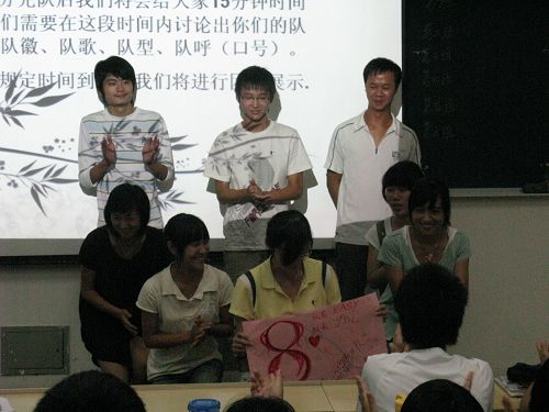 首先,麻法全老师对初入大学殿堂的新生作了一番深刻而又耐人寻味的寄词,他提出“学会学习,学会生活,学会工作”的中肯期望,希望新生珍惜大学的宝贵时间,做一个有为之人。然后,学生会主席吴剑波同学强调了学校的学分制度、请假条例等问题,以明确学生的学习方向,端正学生的学习作风,真正做一个“学会学习”之人。最后,一场生动有趣,意义深刻的成长教育课开始了,本版块分为“团队展示”、“分队大比拼”、“我想了解你”三个环节,有效地训练了团学干部的团结意识和竞争意识,其中“我想了解你”环节更是为团学干部今后的相处合作提供了一个良好的开端,意义深远。八点左右,本场活动在愉快的氛围中圆满结束。