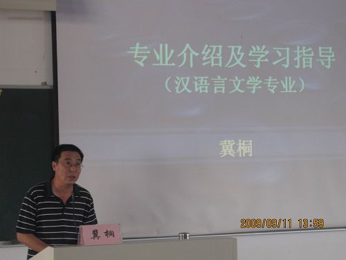 冀桐教授给全体新生做了详细而深刻的汉语言文学专业介绍与学习指导。