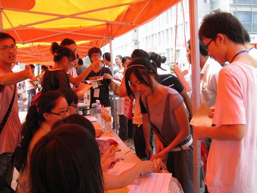 ,为 尽快融入大学生活奠定基础。在签到之后,新生们拿到自己的寝室钥匙,由专门的志愿者帮助提拿行李,引领新生去寝室,为他们解决生活上的一些问题,例如购买床上用品、生活用品等。接待处热闹非凡,志愿者们都十分积极地为新生们服务,一直持续到晚上九点,接待工作都有条不紊地进行着。