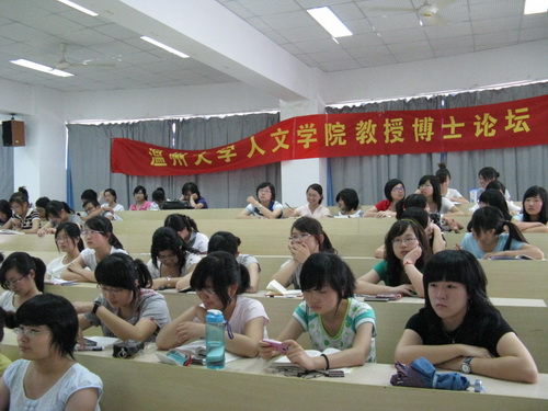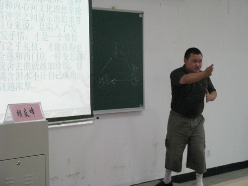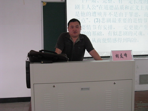 副教授胡友峰主讲。胡教授在文艺学方面颇有造诣,是浙江大学文艺学博士,山东大学文艺美学研究中心博士后。讲座吸引了很多大一、大二的学生前来听讲。