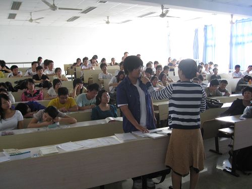 志愿者们讲解如何正确佩戴隐形眼镜。机电学院、数学学院和法政学院的志愿者们也积极参与到了本次活动中来。