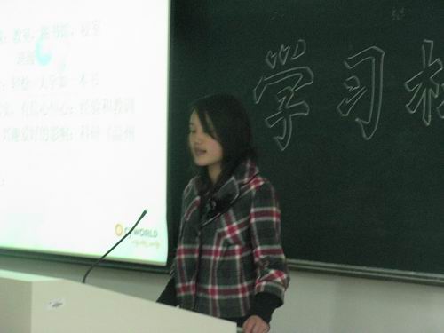 在主持人讲解了评比规则之后,各选手开始上台进行自己的竞选演说,分别从个人学习、工作事迹、参与班团活动等方面展现自己的风采。06中本一班施柳懿同学在简单地讲述了自己的学习事迹后,着重提到了《温大青年》对她人生成长的帮助。08中本三施春兰同学真诚实在地道出了自己对学习的态度和看法,并且许下了“为中华崛起而读书”的宏伟志向,赢得了现场评委及同学的阵阵掌声。整个活动现场,气氛相当活跃和轻松。