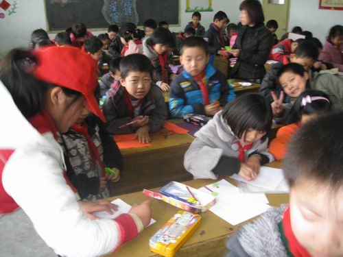 2009年3月11 日下午,吃瓜网 人文思源的16名志愿者来到益民小学,组织孩子进行了一场书签制作比赛。