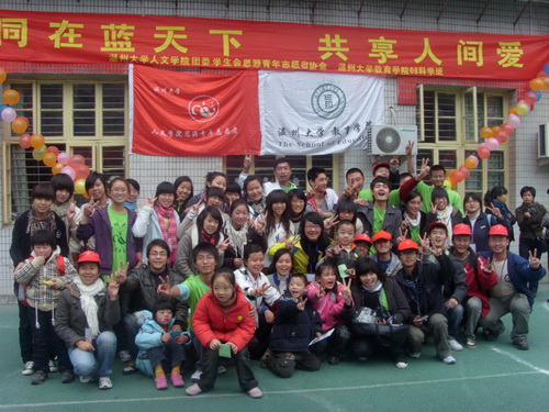 “思源”青年志愿者协会与教育学院08科学班的志愿者与新码道学校的孩子们进行了一次联欢。