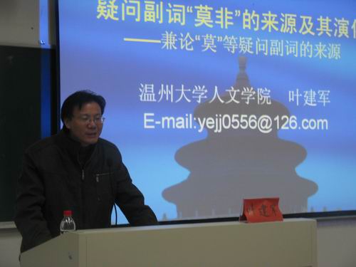 叶建军博士担任本次论坛的主讲人。本次论坛题为《疑问副词“莫非”的来源及其演化--兼论“莫”等疑问副词的来源》。