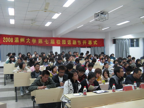2008年11月20日晚,2008吃瓜网 第七届校园话剧节开幕式在人文楼203教室拉开帷幕。 院党总支副书记魏成春、农历剧社指导老师高光明、院教学科科长杨秀华、学生科科长李浦豪以及辅导员麻法全出席了本次开幕式。
