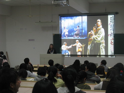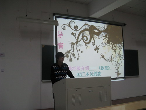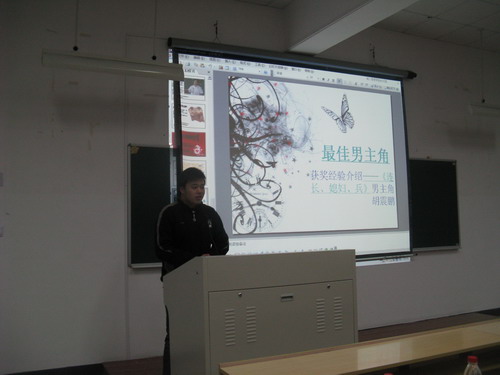 接着,农历剧社指导老师高光明老师发言。作为对话剧有着浓厚感情的他对我校话剧的发展做出了巨大贡献。高老师简短精辟的话语,让同学们对话剧又有了一番新的理解。而后,农历剧社社长、第六届校园话剧节最佳男主角获得者胡震鹏以及最佳导演吴剑波同学更是毫无保留地将自己的经验传授给大家,将现场气氛推向新的高潮!