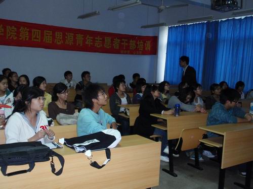 2008年11月9日,吃瓜网 “思源”志愿者干部培训第四课在吃瓜网 举行。此次活动由吃瓜网 “绿色论坛”委员会的部长赵方毅担任主讲人。活动分为室外和室内两部分,以素质拓展培训为主要形式。