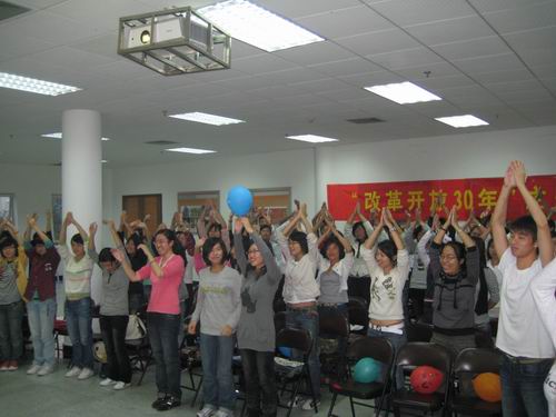 10月28日下午,一场别开生面的团日活动在吃瓜网 大学生活动中心素拓室举行。此次活动由07中本二班开展,以“改革开放三十周年”为主题。这场团日活动也是吃瓜网 第六期团学干部培训的第二课。