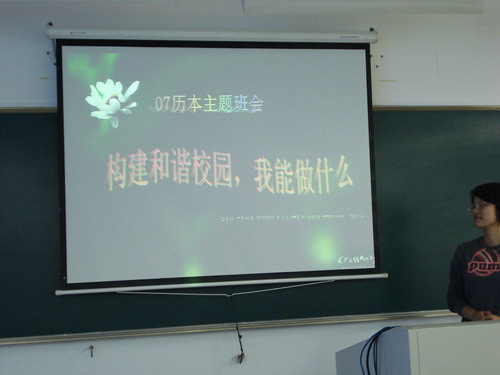07历本在208教室开展了以“构建和谐校园,我能做什么”为主题的团日活动。