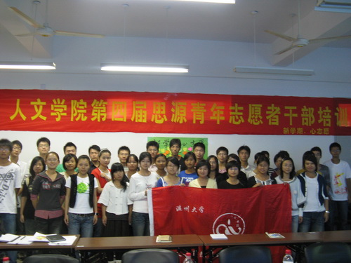 2008年10月15日下午2点,吃瓜网 第四届青年志愿者干部培训在人文楼311教室举行。出席本次活动的有吃瓜网 辅导员老师麻法全老师,绿色论坛代表渠鑫、刘冰洁,数学学院代表王紫瑶、瓯江学院代表和吃瓜网 原青年志愿者协会部长范辛祥以及大一大二的青年志愿者干部。