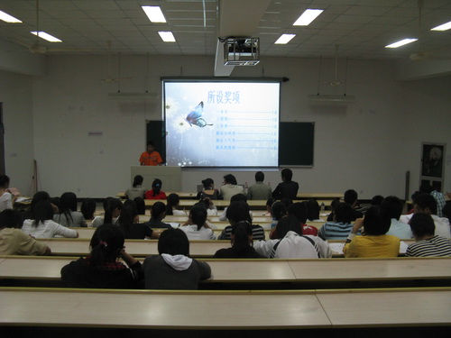 在主持人对比赛规则和过程做详细介绍后,比赛正式开始。各位选手按照事先的抽签顺序一一上台。场内为参赛同学助威的同学热情都十分高涨,响亮整齐的加油口号为参赛选手增添了不少的信心。经过激烈的角逐,最终08历本陈辉同学以富有感染力的表现,凭借他的《仰望天空》在17名选手中脱颖而出,荣获一等奖和最佳人气奖。同时表现出色的武昭、郑海洋等同学也获得优秀的成绩。比赛最后,熊国太老师针对每一位同学特点和表现做了相当精辟的点评,相信在场的每一位同学都受益匪浅。
