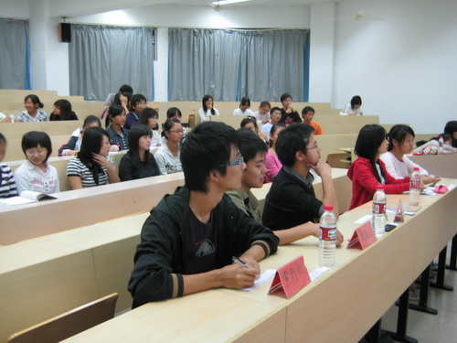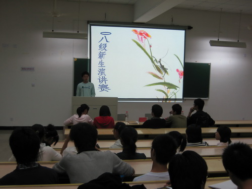 08级新生演讲赛预赛在人文楼203教室展开,本次比赛得到了新生的积极响应,共有35位选手参加。07级新生演讲赛一等奖得主黄剀元、二等奖得主陈辰立以及最佳口才奖获得者李晓担任了本次预赛的评委。