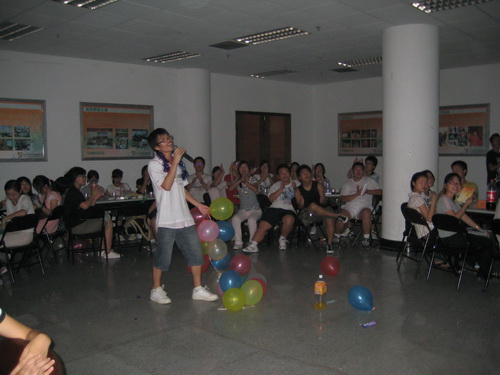 为了增进两个班同学间的交流,所有同学被随机地分成六组。在音乐声中,主持人登台,晚会正式开始。第一个节目便是08历本表演的京剧,令在座的同学为之一振。07历本的同学也不甘示弱,陈志燕同学的越剧表演也令在场的同学们赞叹不已。之后是一连续的歌曲表演,大家都沉浸在优美的歌声中。之后开始了各种互动小游戏,在抢凳子的过程中,参赛的同学都把目光集中在凳子中,个个都是跃跃欲试的样子,大家参与的热情都十分高涨。之后连续的互动游戏,使晚会的气氛达到了高潮,不时有一阵阵的欢笑声。在不知不觉中,晚会接近了尾声,大家在一首《朋友》中结束了这个难忘的夜晚。