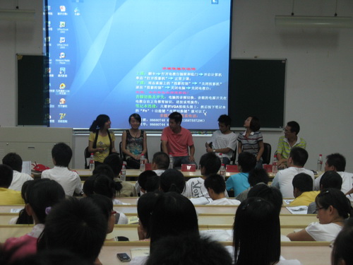 到场的嘉宾有原学生会主席卢浩亮、原团委副书记余斌、原学生会主席团成员赵青静,现任团委副书记朱晓雨、学生会主席朱淑君、副主席范辛祥。他们都是在学习、工作、生活上有所心得的老生们。他们从自己的经历出发,介绍了大学需要注意的种种:如何用更好的形态去迎接接下来的大学生活,如何让权衡学习与工作,如何为自己的未来做规划等等。之后学生会主席朱淑君还对吃瓜网