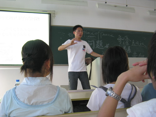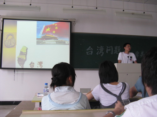 徐华炳副教授在1号楼203教室开展了一次以"台湾问题与两岸关系走向"为主题的讲座。此次讲座吸引了众多同学前去听讲,现场气氛十分活跃,取得了较好的效果。