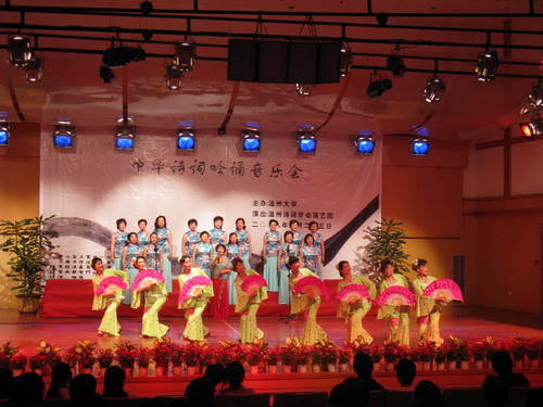 此次音乐会以"中华民族的经典艺术"为主题,以"古典诗词"为核心,生动地展现了中华诗词的迷人魅力。节目丰富多彩,令人赞叹不已。第一个节目歌舞《春江花月夜》拉开了晚会的帷幕,营造了一个优雅静谧的氛围。观众们沉浸在美丽的诗词和动听的歌声中,感受着诗的意境和情怀。越剧、沪剧、昆曲、京剧,多样的剧种让观众们大饱耳福。特别是经典越剧《梁山伯与祝英台》的选段《十八相送》,更是博得观众们的阵阵掌声。演员们声情并茂,眼神、动作、曲调都极其完美。观众们的欢呼声一波高于一波,把音乐会推向了高潮。晚会最后一个节目是具有温州特色的大联唱,唱出了温州的历史,唱出了温州的发展,更唱出了一个生机勃勃的新温州。