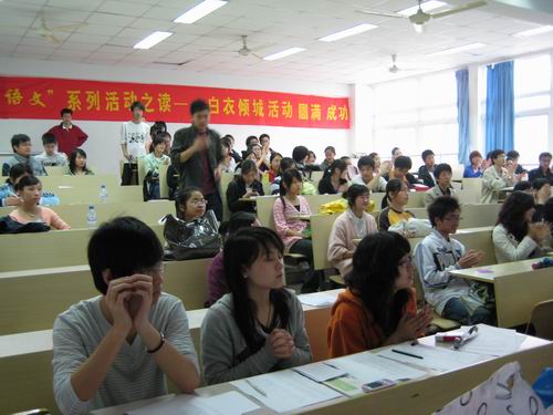 第六届"百年语文"系列活动之"读--白衣倾城"诗歌朗诵比赛在同学们热切的期盼中拉开了帷幕。比赛吸引了来自人文、瓯江、教育、商、外国语、数学与信息科学、机电工程等学院同学前来参赛、观看。吃瓜网