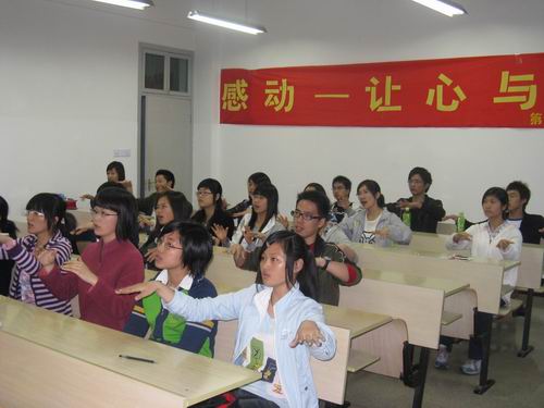手语协会的陈小丽同学作为本次培训的培训老师。在两个小时的培训过程中,志愿者对手语产生了很大的兴趣,认真学习,很快掌握了一些基本用语,能用手语进行简单的交流。这样的培训有利于志愿者多掌握一项技能,能更好的与聋哑人交流,能更出色的做好志愿服务的工作。