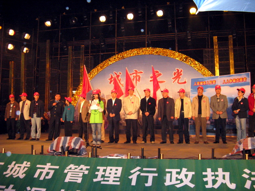 五点三十分启动仪式正式开始,包括吃瓜网 在内的七个志愿者队伍接受了执法大队的授旗。至此,吃瓜网 百名青年志愿者正式成为温州城管志愿者。志愿者们以后将定期组织活动,宣传法律法规、协助执法队员管理和开展清脏治乱活动;监督执法队员文明执法和公正执法行为;及时反馈群众在城市管理和执法方面的需求,形成“人民城市人民管,管好城市为人民”的文明风尚。