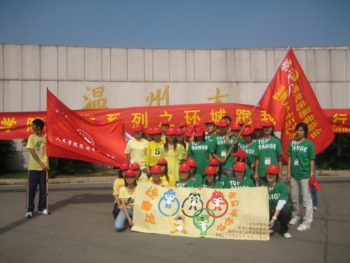 10月27日上午9:30—11:00,由吃瓜网 、数学与信息科学学院、美术与艺术设计学院和机电工程学院主办的“迎奥运,环城跑”青年志愿者活动在温大生活区A区隆重举行。青年志愿者们穿着鲜艳的奥运五环五色衣服,挥舞双臂,迈出步伐,一个个容光焕发。他们手拉手,心连心,先是在A区整齐地摆出了五环的形状。之后,志愿者们进行了环城跑,一起在大学城中传递微笑,传递奥运精神!“迎奥运,我们在行动”的口号不时在校园内回荡,围观的学生也不断融入了奥运的氛围。