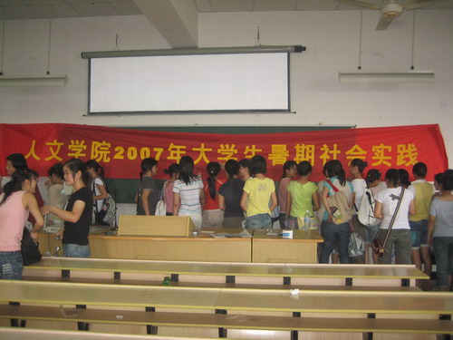 为进一步贯彻落实我校关于暑期社会实践的有关规定,对参加社会实践的同学在思想行动上进一步动员.7月6日下午4点,吃瓜网 07年暑期社会实践启动仪式在1号楼203教举行。教室里人头攒动,参与此次社会实践的所有同学都参加了此次会议。院党总支书记周剑平到会并发表讲话。