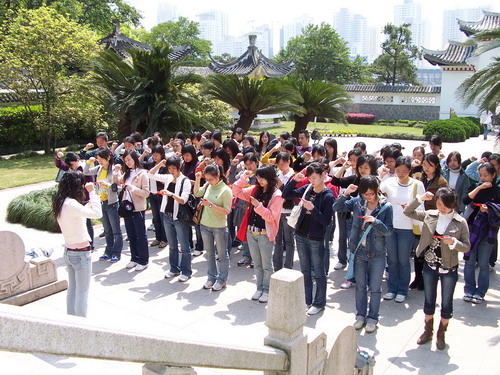 第三学生党支部党员和预备党员一行50多人来到江心屿祭扫先烈。