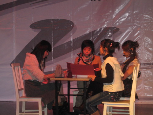 05中本3班的同学们献上的《错爱》,教育学院的《最爱的人》等等;也有新编搞笑版的《梁山伯与祝英台》,原创历史剧《“莫须有”罪名》等其他许多类型的话剧。令人欣慰的是,本次决赛参演举目有一半以上剧本是属于原创的。演员们精彩的表现不时博得观众的阵阵掌声,感动处,也不禁纷纷落泪……