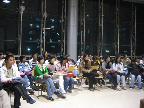 2006年校园话剧节之听我所要——话剧讲座在北校区行政楼玻璃大厅开讲,由农历剧社的指导老师高光明老师主讲,全场座无虚席。高老师以“从中国近代话剧(歌剧)看传统文化的影响”为主题,向在座的同学介绍了话剧在中国的发展和影响以及话剧表演的一些要求。