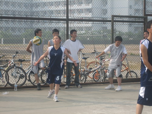 此次参赛的队伍有06中本1、06中本2、06中本3、06中本4、06历本等5支队伍。10月21日下午3点半,比赛准时开始,首先对战的是06中本1VS06中本2,06中本3VS06中本4,3班与4班之战激烈得令人惊叹,在第一场,3班的5号选手凭着发球连连得分,独自一人就发了15个球!最终将比分锁定在25比6,第二场4班奋起直追,但也以25比18落败。