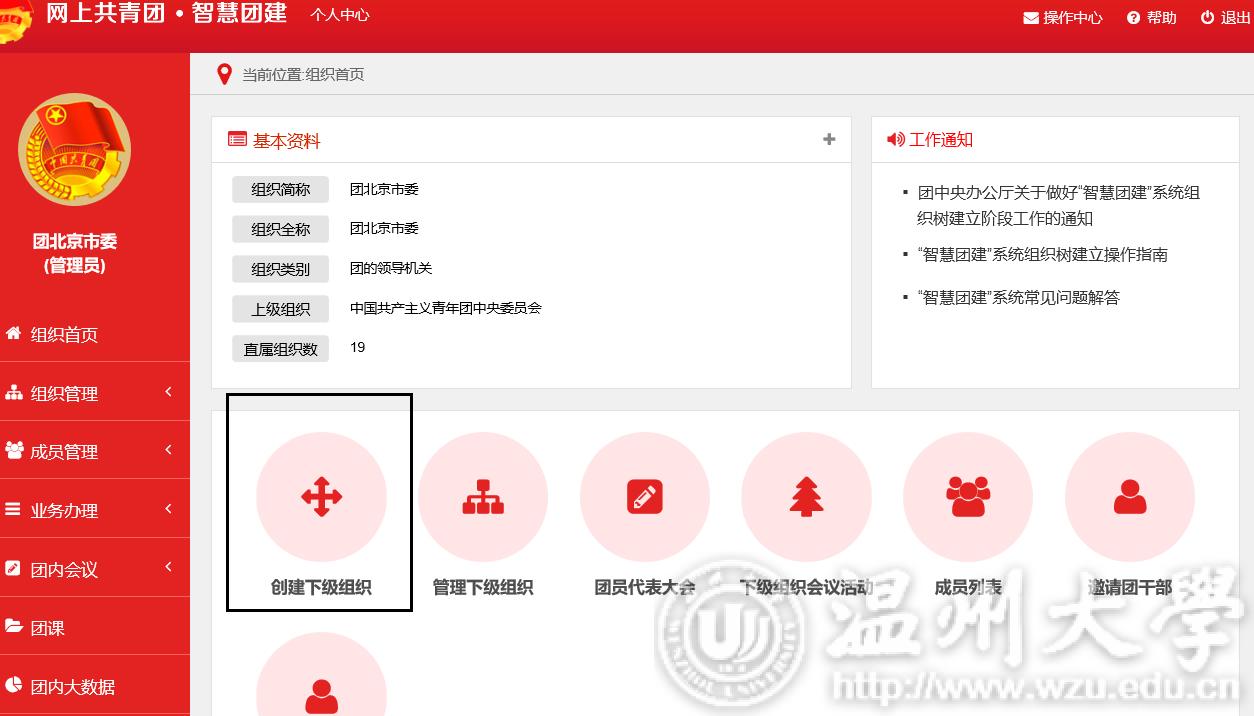 (3)团的领导机关已初始化到系统,无需再次创建,但要对其组织排序、组织名称进行核对。