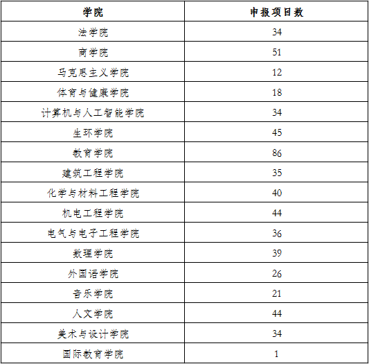 根据各学院符合资格人数,申报名额如下表所示:
