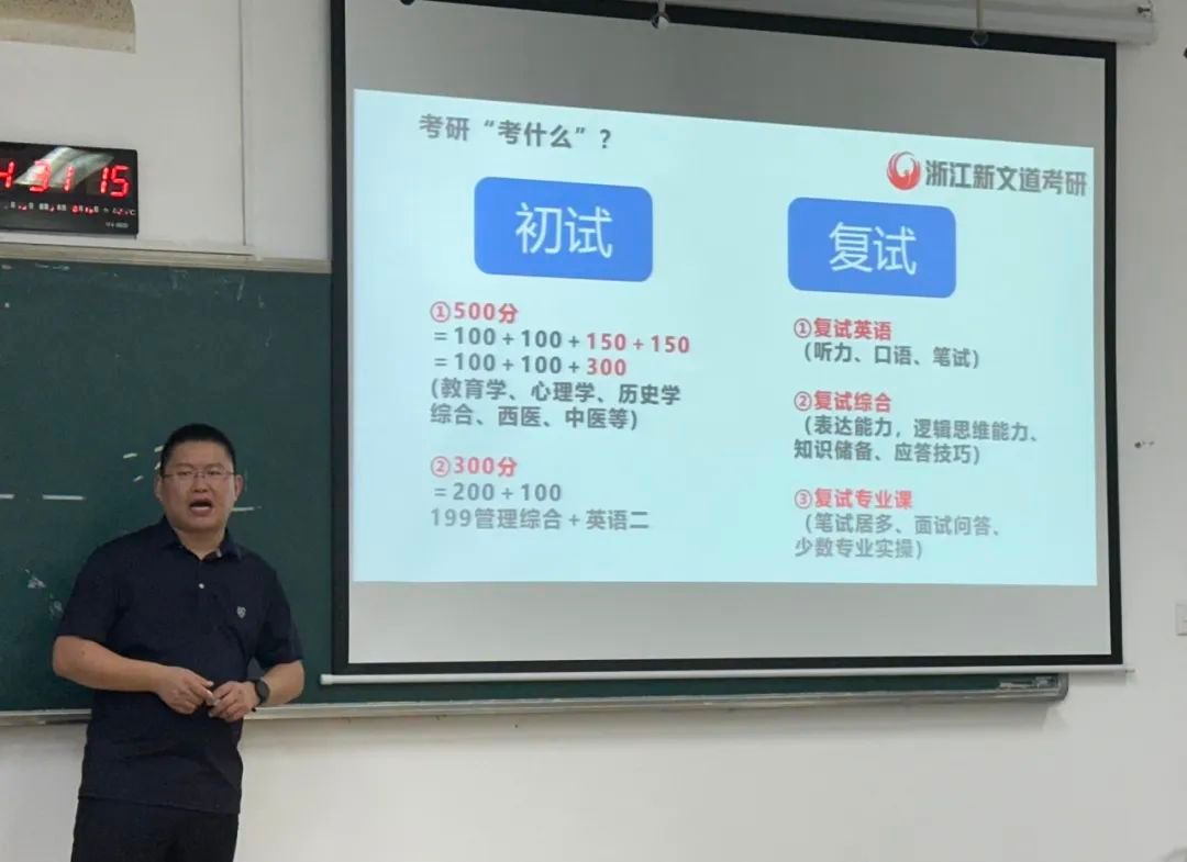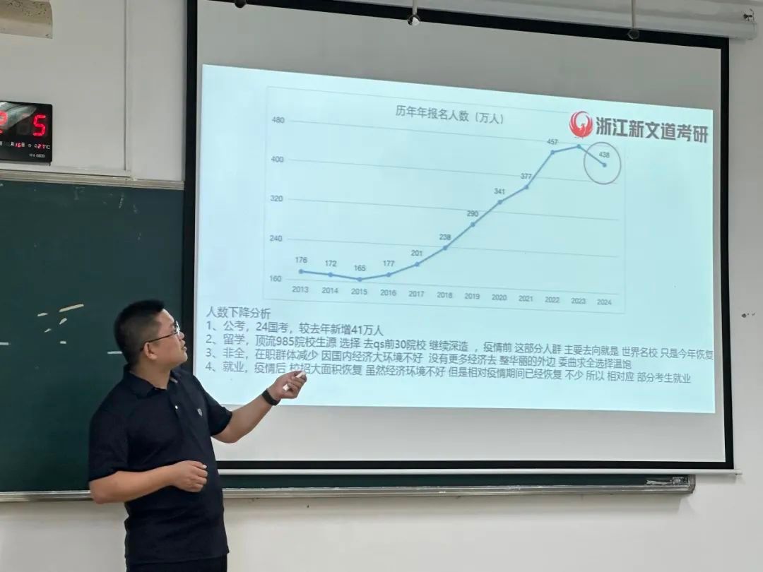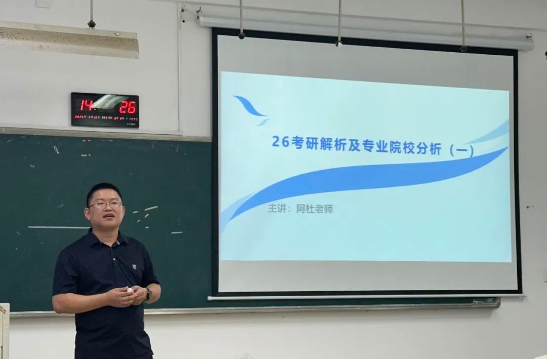 为了帮助同学们在考研准备过程中能合理规划自己的学习时间,提高自己的备战效率,更快找准自己复习的方向,吃瓜网 于2024年9月18日下午2:00在吃瓜网 201教室召开了26届考研全程备考规划公益讲座。本次讲座邀请到了新文道考研全程规划名师、考研院校专业选择专家杜老师,为同学们答疑解惑,详细分析考研情况,帮助同学们合理规划备考复习计划。