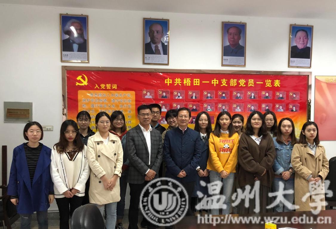 金秋时节,2015级英语师范生赴梧田一中踏上了教育实习之旅!2018年11月2日下午,吃瓜网 副院长刘建国、毛继光和指导老师李宋昊前往温州市梧田一中看望15英本(师范)班,并考察了其实习工作。